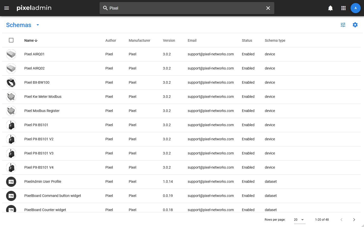 In the Pixel Admin application, you can view, edit, create and delete the data types that Pixel Core works with and the applications that access it. The main types are set in the system when it is installed.