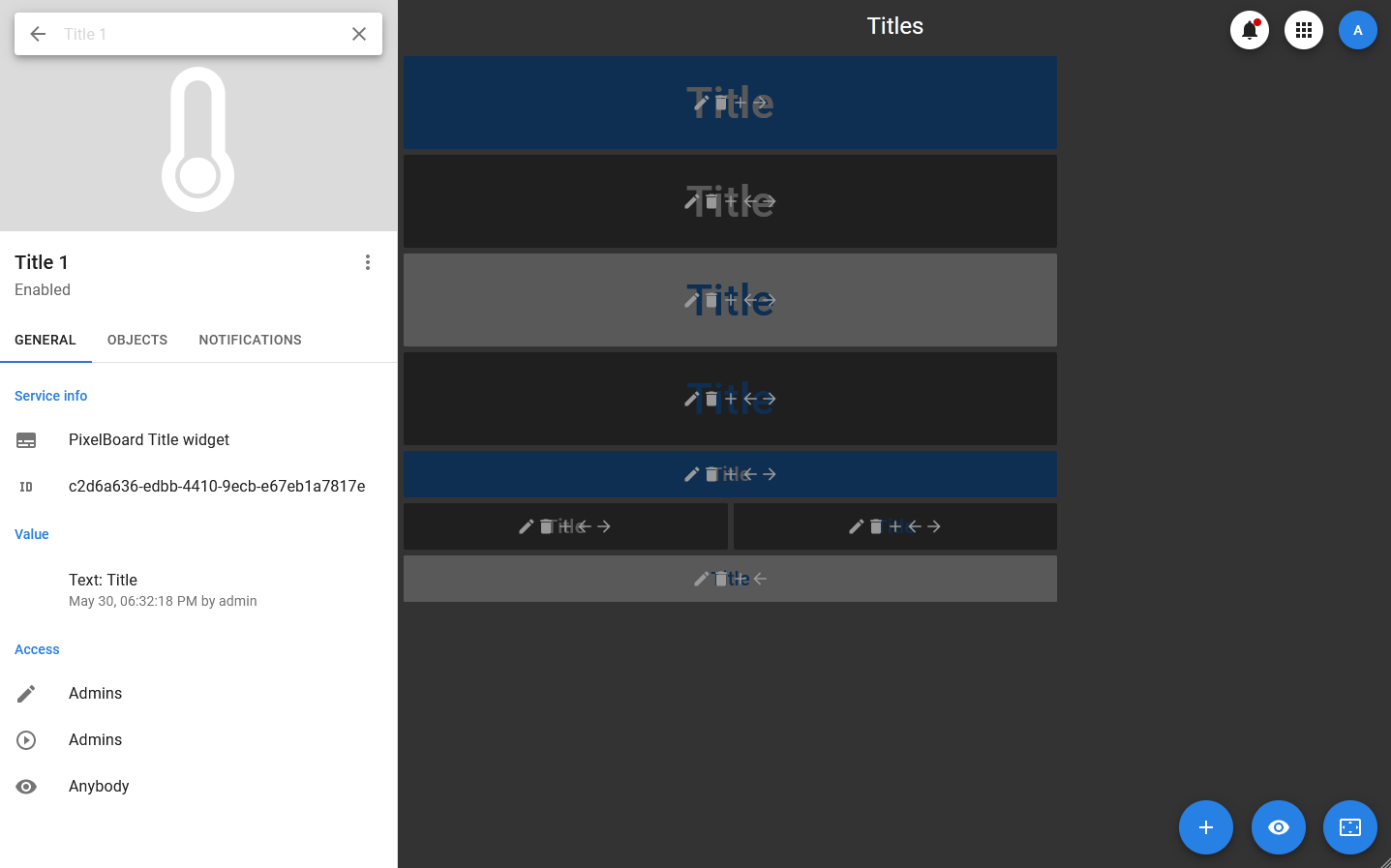 The title widget is designed to display short text entered by the user. The widget can also contain a link to the dashboard.