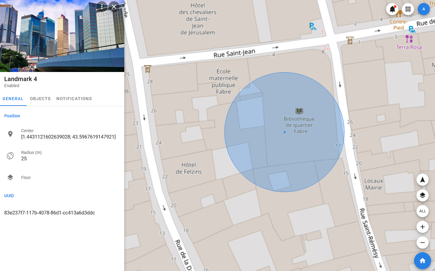 - NOTIFICATIONS — this tab displays all notifications related to this landmark (sent by both the system and users).