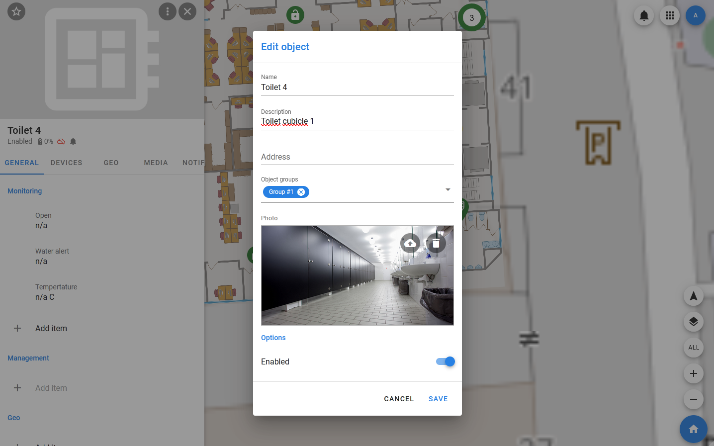 - Edit — correction of basic information about the object. It includes the name, description, photos, a list of object groups, and the value of the emulation flag. The object type cannot be changed.
