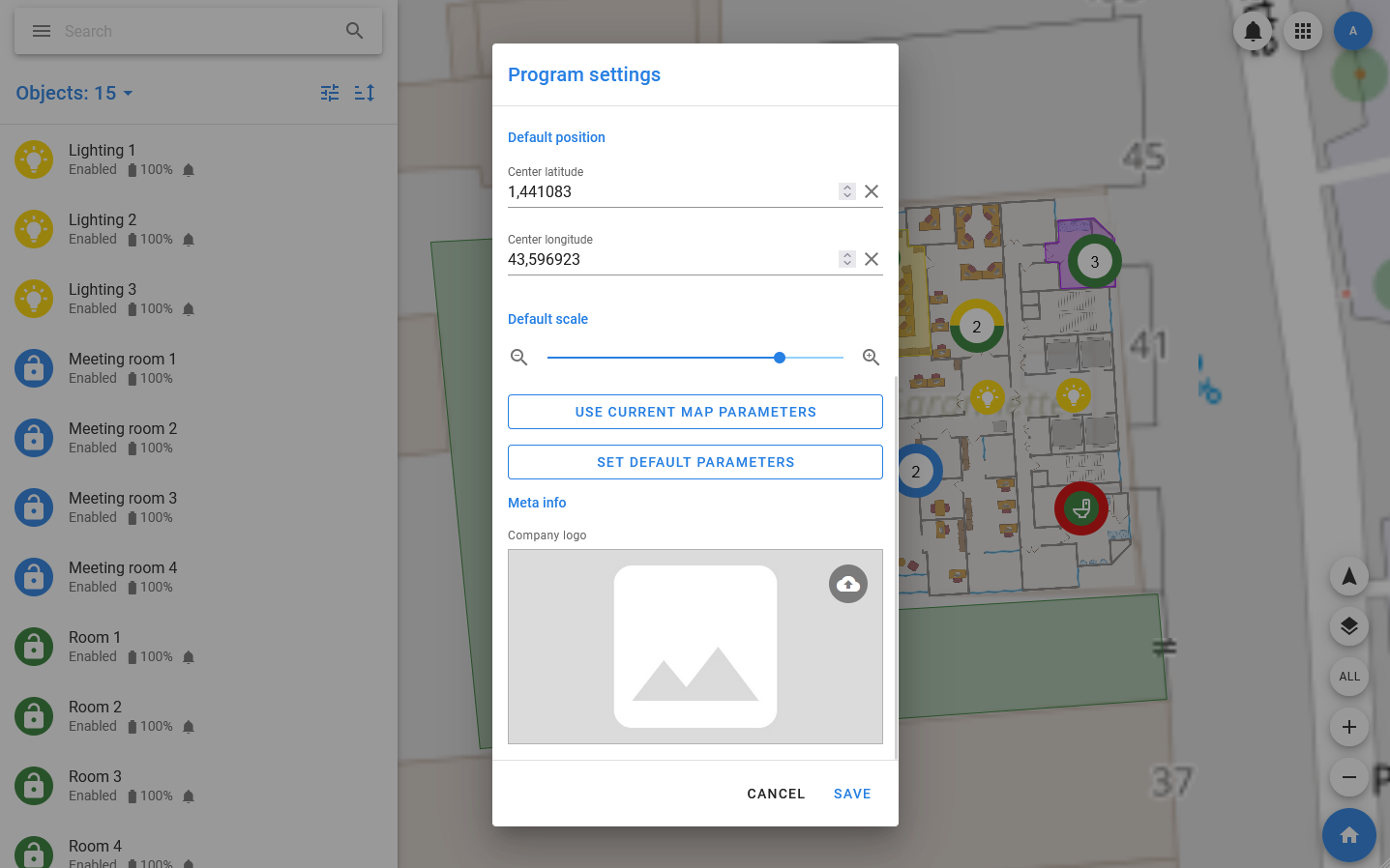 - Default map scale is the scale that will be applied when you log in to the app or when you click on the Home button.